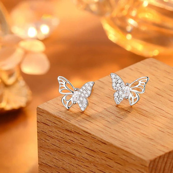 เซอร์โคเนียแบบกลวงสไตล์หวานสุดหรูต่างหู S925เงินสเตอร์ลิงผีเสื้อสำหรับผู้หญิงเครื่องประดับอัญมณี YB-XY-428