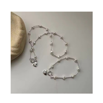 Collares de cuentas de plata redondas hechas a mano collares de cuentas de perlas de agua dulce naturales pulsera collares con dijes de corazón