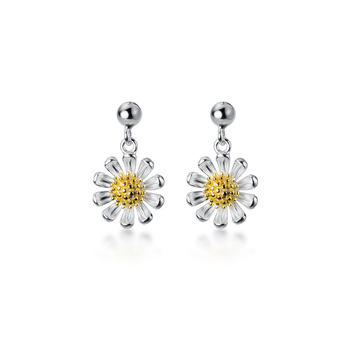 Pendientes de plata de ley 925 para mujer, joyerÃa de verano, aretes de gota de Margarita dulce, regalos de joyerÃa